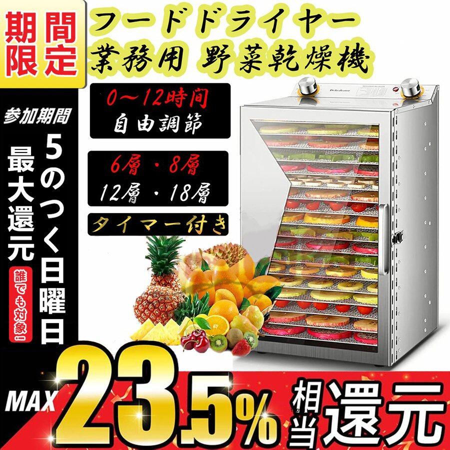 フードドライヤー 野菜乾燥機 業務用 食品乾燥機 フードディハイドレーター 電気食品脱水 ステンレス鋼 タイマー付き 0?12時間自由調節 6層・12層・18層p120015127be27