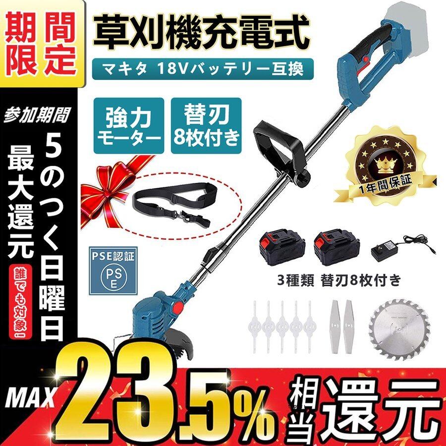 草刈機 充電式 電動 草刈り機 刈払機 マキタ 18Vバッテリー互換 コードレス 伸縮式 グラストリマー 角度調整 替え刃付き 枝切り 軽量 バッテリー充電器別売p1200384482b6a | onishi9