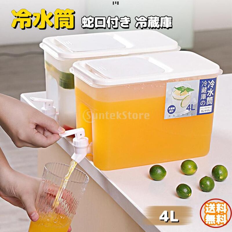 冷水筒 蛇口 冷蔵庫 家庭用 4L 蛇口付き冷水筒 大容量 ピッチャー ウォータージャグ 麦茶ポット パーティー 果物の茶