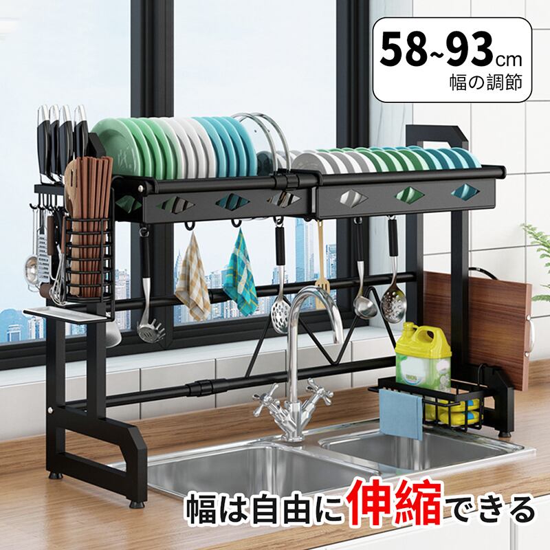 水切りラック シンク上 伸縮式 1段 | 水切りラック シンク上 炭素鋼製 水切りかご シンク渡し シンク横 キッチン キッチン収納 まな板立て 箸立て 水切り | onishi9