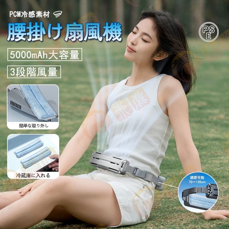 腰掛け扇風機 扇風機 充電式 ベルトファン 5000mAh 冷感 腰掛け 大容量 携帯扇風機 PCM冷感 小型 持続冷却 静音 強力 屋外作業 登山 キャンプ 熱中症対策 | onishi9
