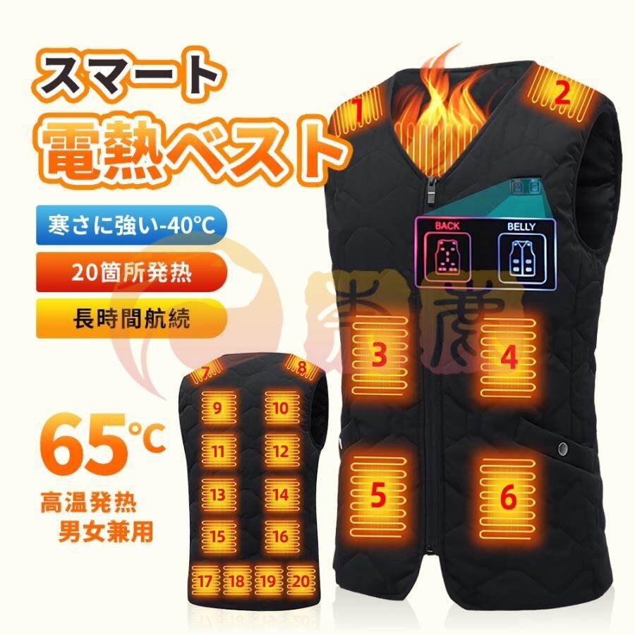 電熱ベスト 電熱ウェア 20箇所発熱 USB 前後3段温度調整 電熱ジャケット 加熱ベスト ヒーターベスト バイクウェア 発熱ベスト 水洗い 速暖 男女兼用 防寒対策 | onishi9