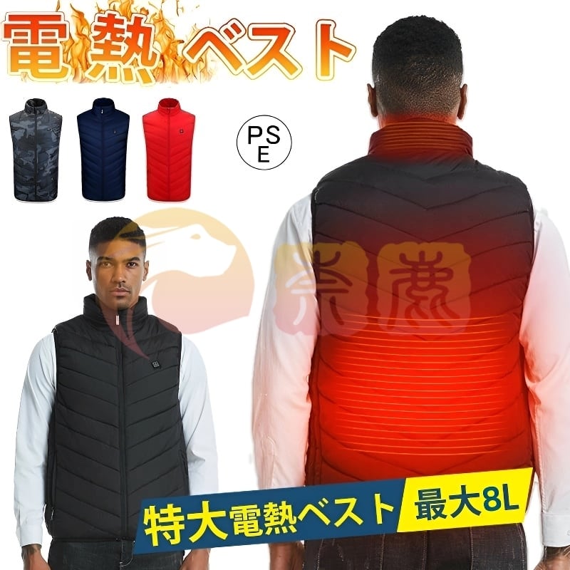 電熱ベスト 追加可能【極大BIG 5L/6L/7L/8L】日本製繊維ヒーター 2/4/9箇所ヒーター 防寒ベスト 3段温度調整 速暖 特大サイズ 水洗いでき 電熱ウェア 男女兼用 | onishi9