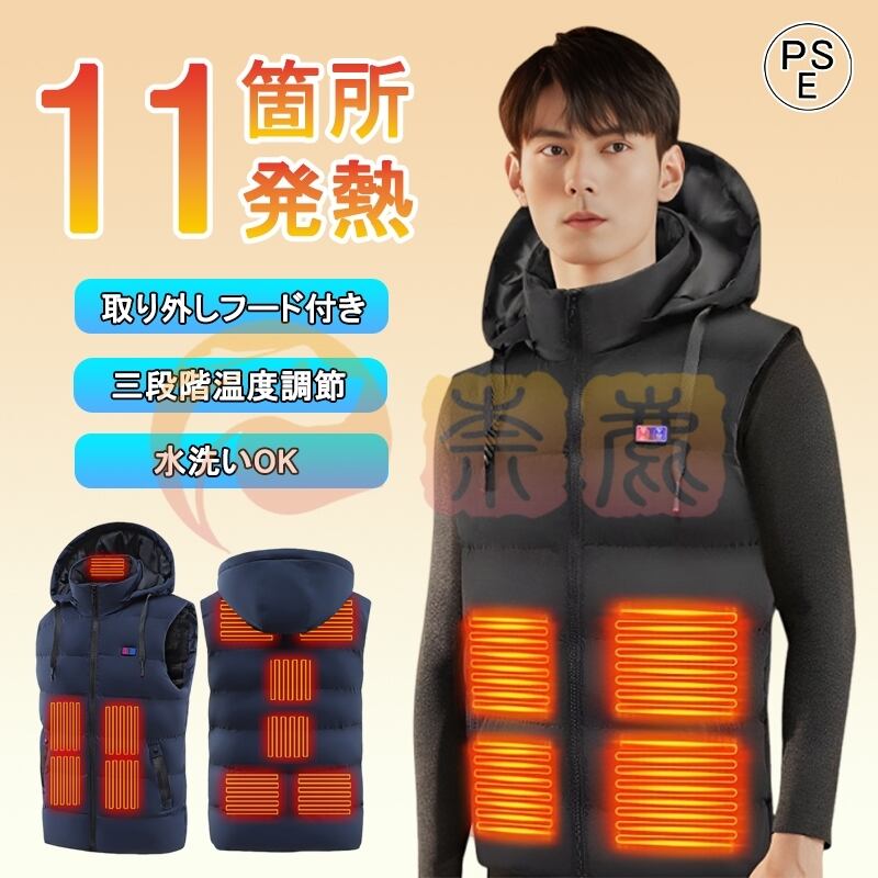 電熱ベスト 11箇所発熱 ワークマン 3段階調温 速暖 速暖 取り外しフード 給電式 水洗い 2種接続口 電熱ジャケット ヒーターベスト 加熱ベスト 男女兼用 防寒対策 | onishi9